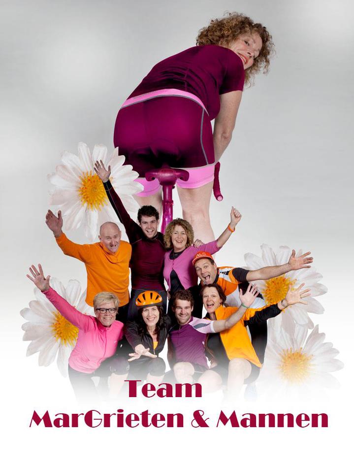 Margriet wil nog één ding. ALS de wereld uittrappen! Dit wil zij doen door de ‘TourduALS’ te volbrengen. Dit betekent dat zij de Mont Ventoux op 7 juni a.s. samen met vrienden en familie, fietsend gaat bedwingen. Daarom hebben wij een team opgezet. Een team voor Margriet, een team tégen ALS. Met dit team, met de ludieke naam ‘MarGrieten & Mannen’ gaan we stinkend ons best doen om geld in te zamelen voor het onderzoek naar de ziekte ALS. Onderzoek dat hard nodig is om ALS de wereld uit te trappen.