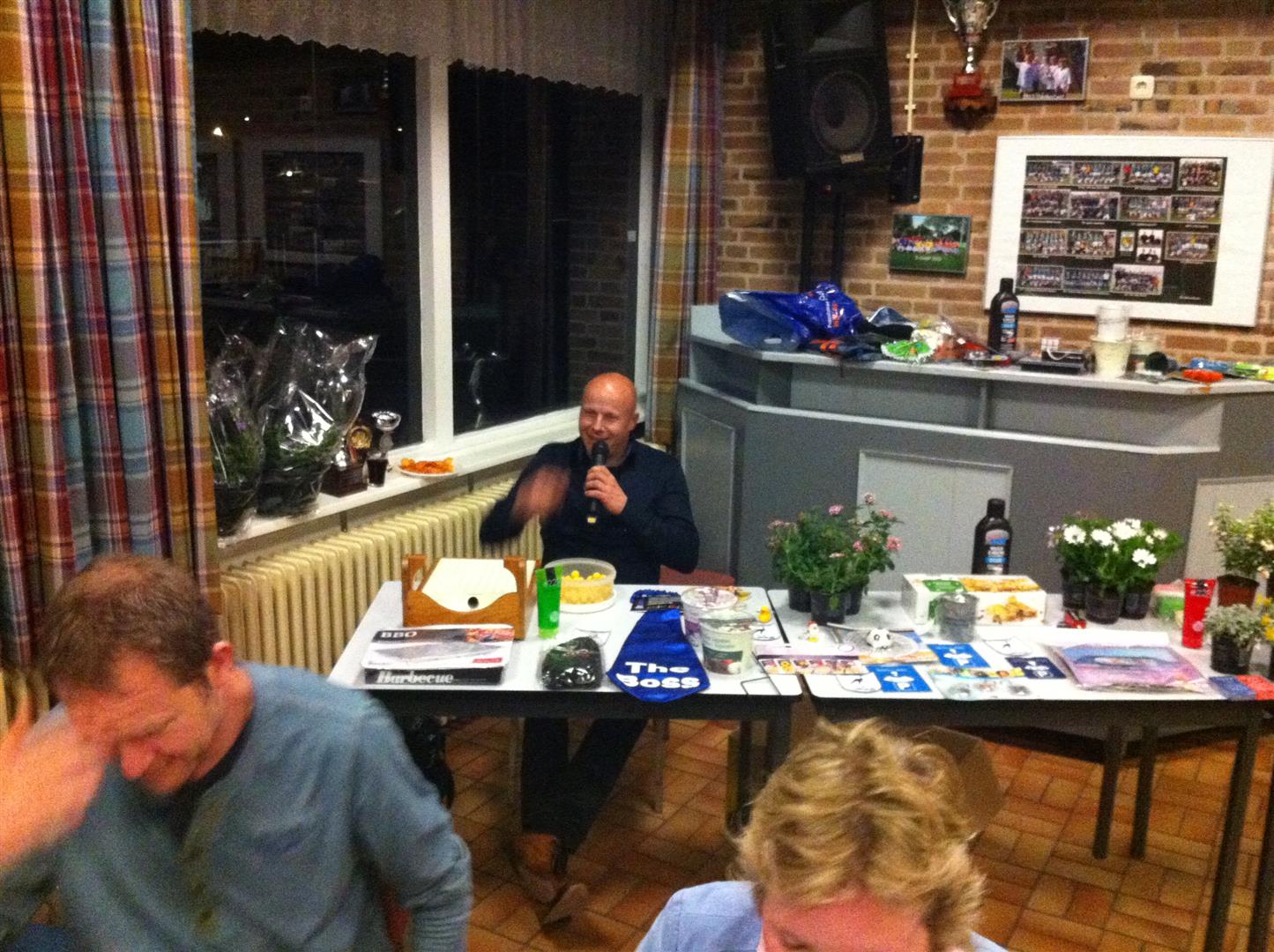 Alle trainers en vrijwilligers werden bedankt met een attentie en eindelijk: tijd voor de bingo. Suzanne en Ilse Donker hadden weer leuke prijsjes uitgezocht en deze werden aangevuld met prijzen van sponsors. Bijna iedereen gaat altijd wel naar huis met een hebbedingetje of wat snoepgoed. Het is altijd weer een succesnummer en een niet te vergeten bijkomstigheid: het levert wat op voor de kas. Ronald, de bingo master, blijft tot het einde toe kritisch: elk lot wordt gecontroleerd! Toch, hij geniet er van want er staat voortdurend een smile op zijn gezicht. Er werden nog wat laatste drankjes geserveerd en keurig vóór middernacht was alles weer opgeruimd en het licht uit.