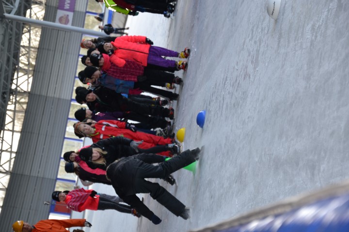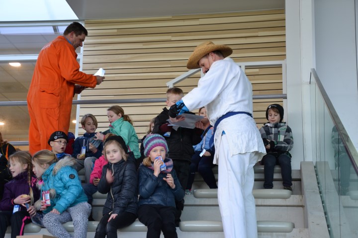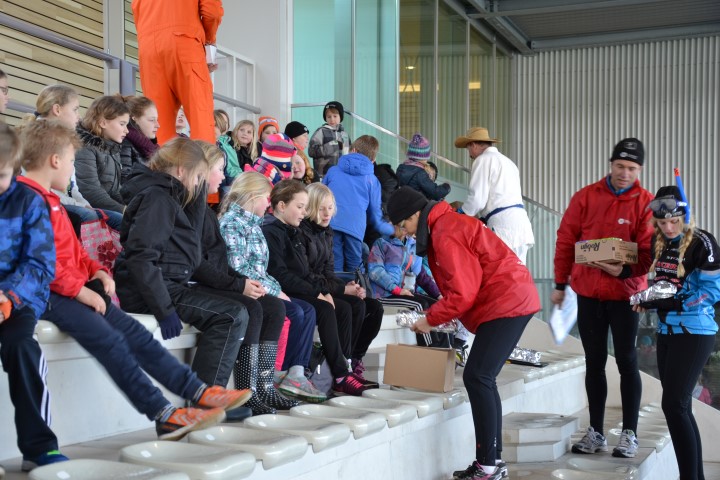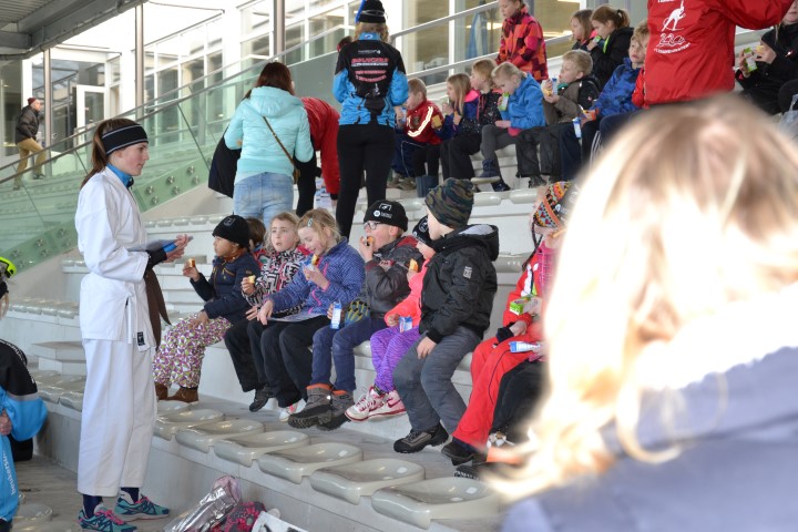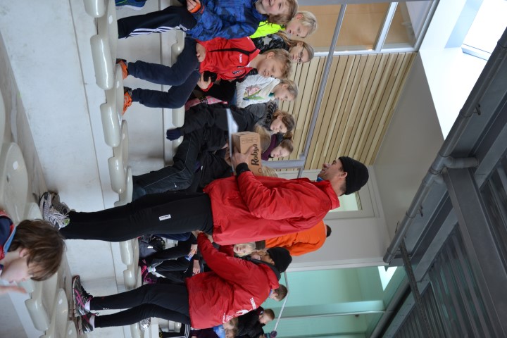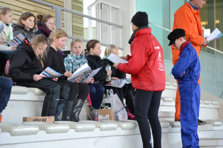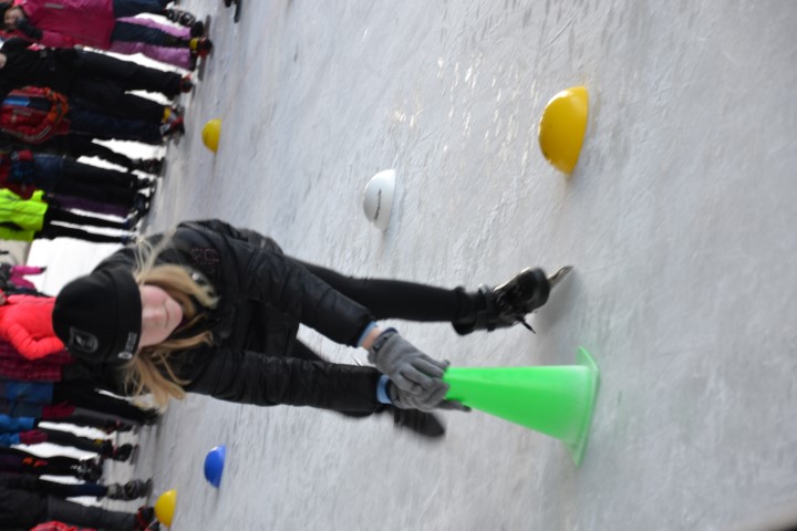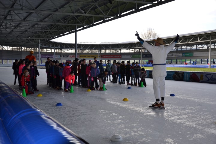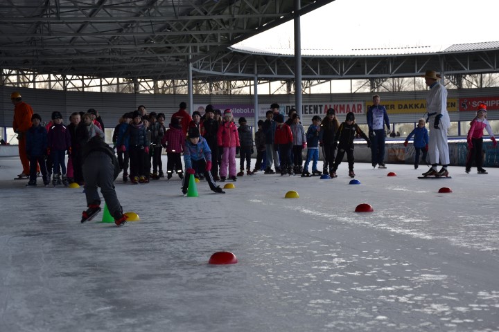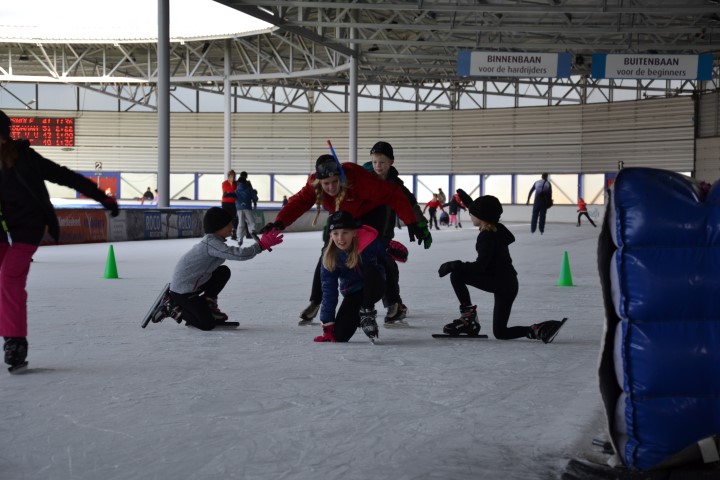 Aan het eind deden we een estafette met alle groepen samen, een heel georganiseer, maar vol enthousiasme werd er aan meegedaan. Met uitleg over de plek waar ze naar toe moesten gaan gingen de kinderen het ijs af.