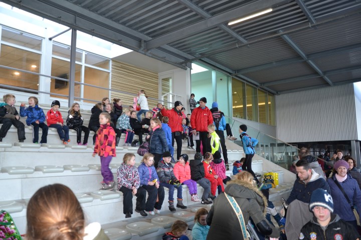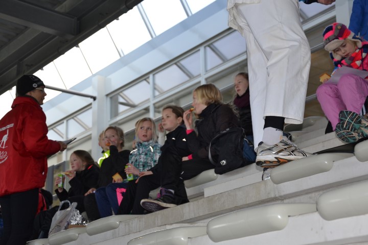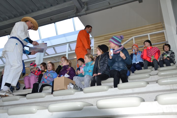 Heel snel zat iedereen op de tribune op de aangewezen plek, want het moment van de diploma´s was aangekomen. Het drinken en de cake, dat was juist wat de kinderen nodig hadden na al dat harde werken. De meester of juf gaf ieder kind individueel een complimentje over bv inzet, doorzettingsvermogen, gezelligheid, vrolijkheid, ideeën, mooi schaatsen enz enz. De kinderen waren allemaal goed vooruit gegaan. Op het diploma staat precies aangegeven wat het kind al kan. De meesters en juffen zijn heel trots op jullie en wie weet zien ze je volgend jaar weer.