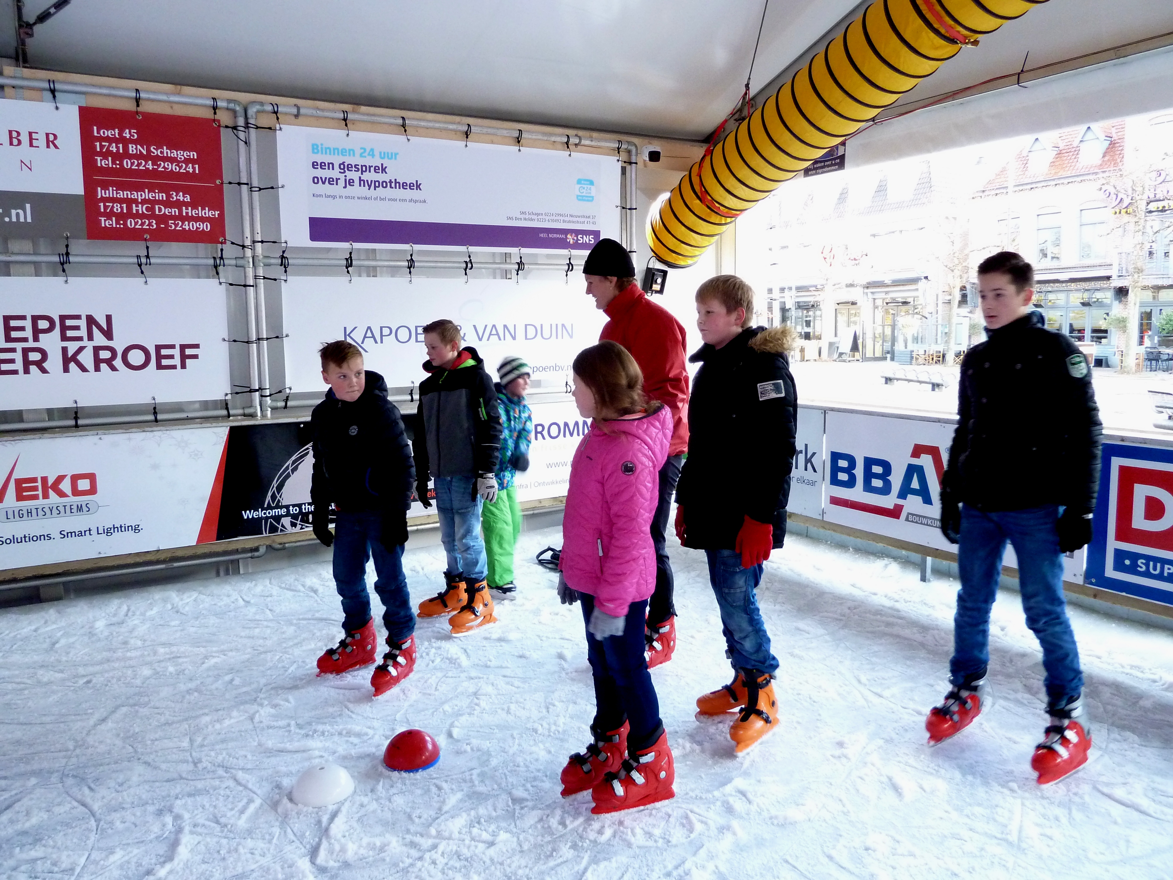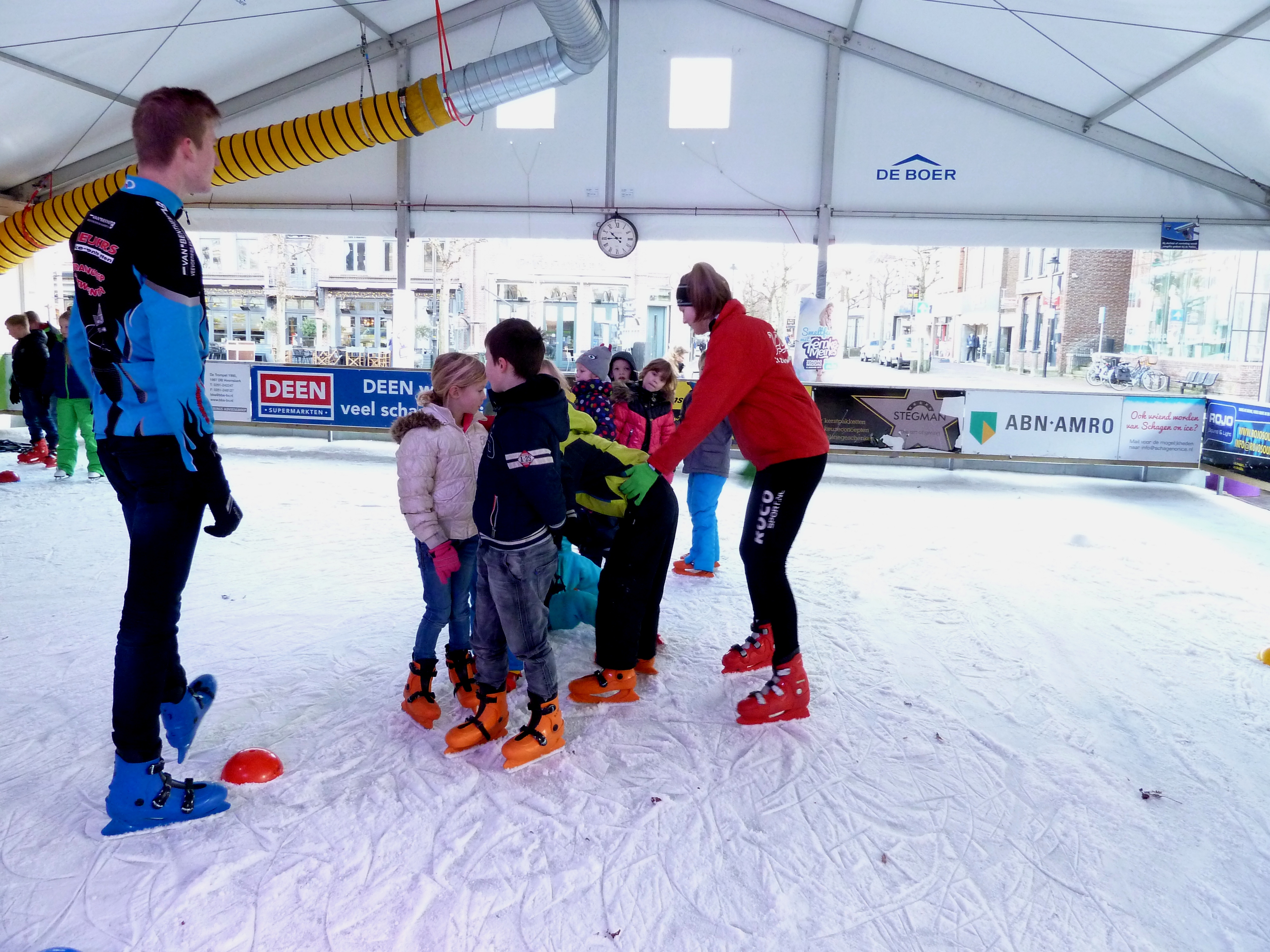 Ook in 2016 konden we ons weer presenteren op Schagen on Ice. We verzorgden clinics van 10 tot 11 en van 11 tot 12. Er waren weer genoeg sportieve kinderen, die mee wilden doen. De groepen werden ingedeeld op leeftijd: 5 en 6 jaar/ 7, 8, 9 jaar/10, 11, 12 jaar. De groep met de kleinsten is het meest bewerkelijk, daarom hebben we daar ook assistentie van jeugdleden bij.