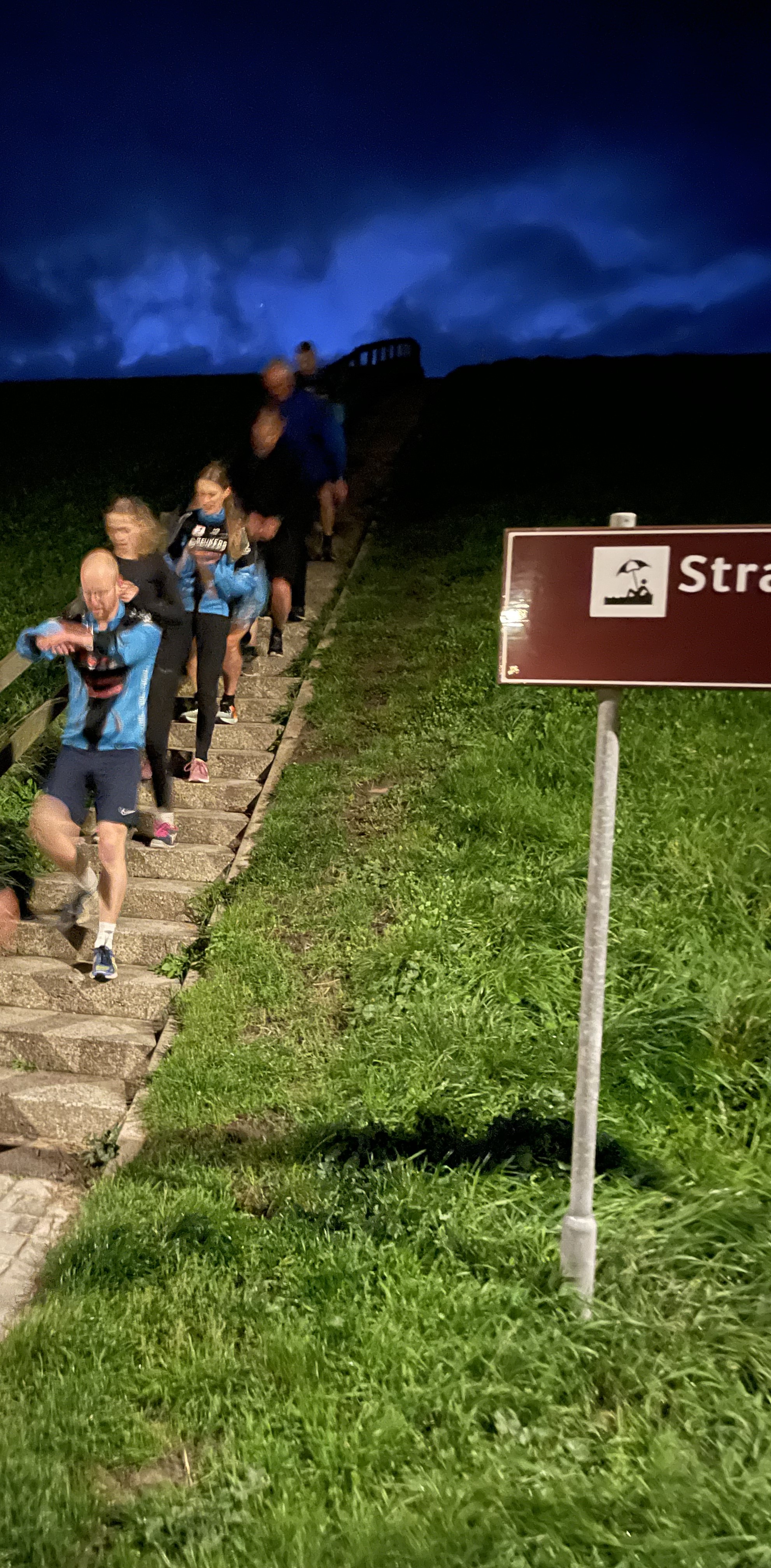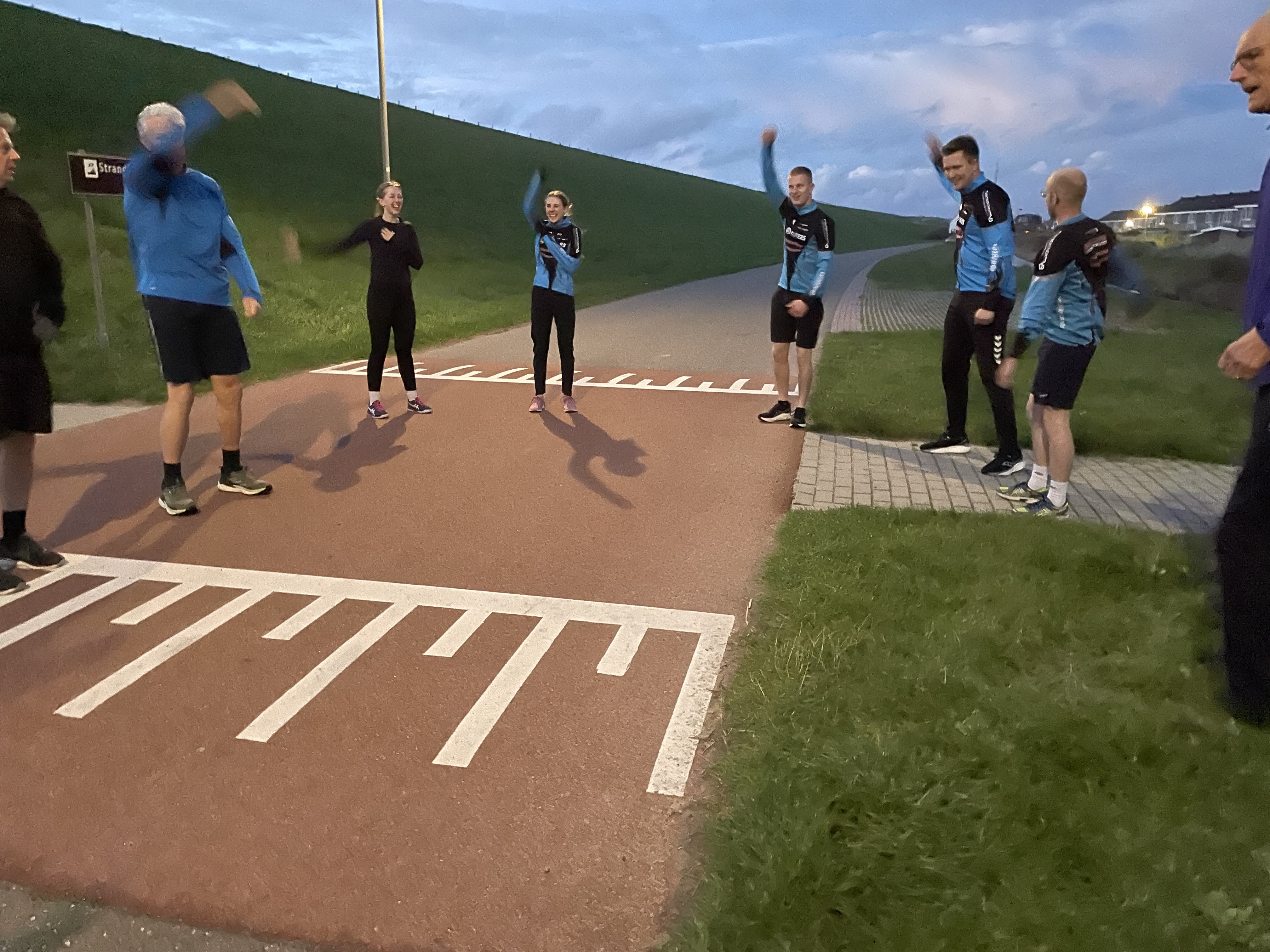 Het skeeleren, fietsen en de bostrainingen zijn allemaal weer ten einde gekomen. De laatste trainingen deden we al niet meer in het bos, omdat het daar te donker was. Gelukkig konden we vanaf oktober bij het licht van de parkeerplaats van het voetbalveld in Petten de trainingen afmaken. Via het goed verlichte fietspad liepen we naar de dijk, want de lange trap daar bood een goede trainingsvorm. Weer terug bij de parkeerplaats maakten we de training af met schaatsoefeningen en buik/rug oefeningen. Het was nog even spannend wat het weer betrof, of de laatste training wel door kon gaan. We hadden geluk. Op een klein buitje na bleef het droog en konden we met de traditionele gezellige picknick afsluiten. Op naar de Meent voor de schaatstrainingen!