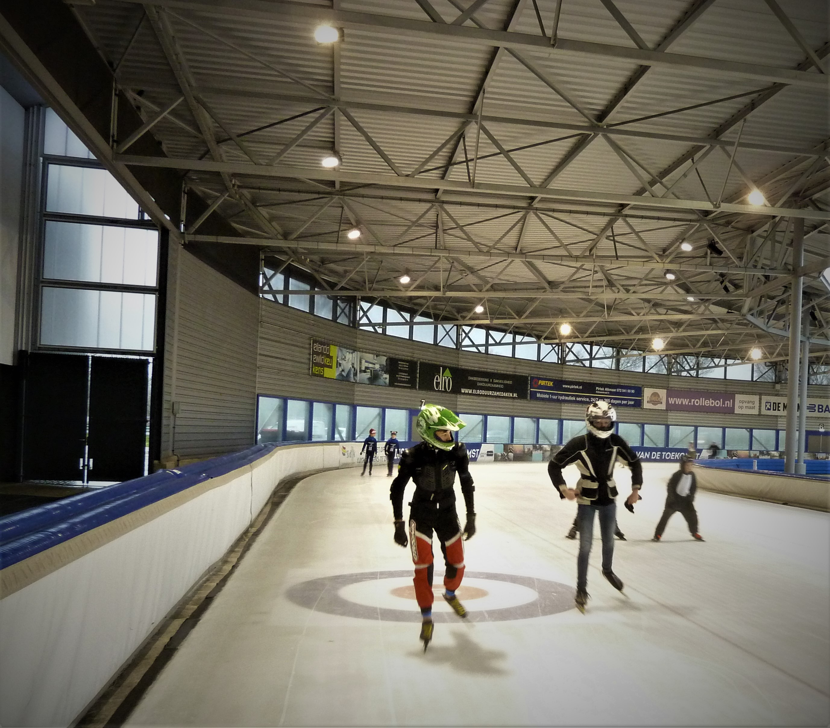 Vijf minuten voor het einde gingen we traditiegetrouw in tegengestelde richting rijden en dan de bocht lopen is nog een hele kunst. De echte skeeleraars onder ons kunnen dat, de anderen alleen na wat oefenen.
