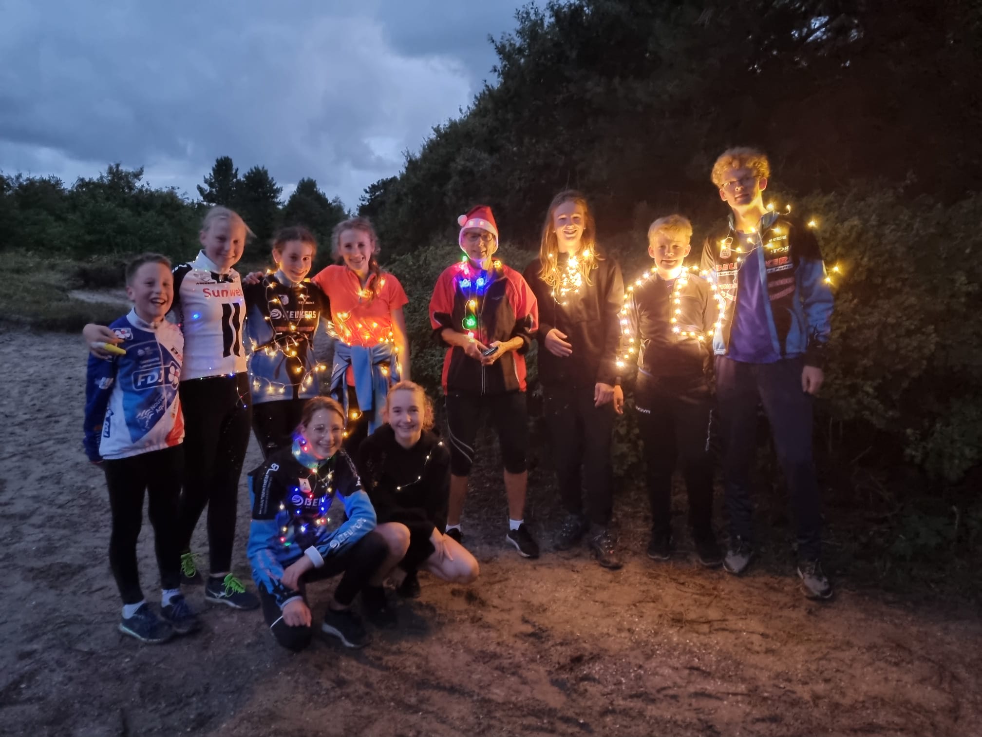 Al jarenlang vieren we de laatste bostraining met picknick in het donker. Het was wel spannend, of het weer wilde meewerken. Rond half acht zou er een stevige bui vallen, maar die passeerde ons gelukkig.