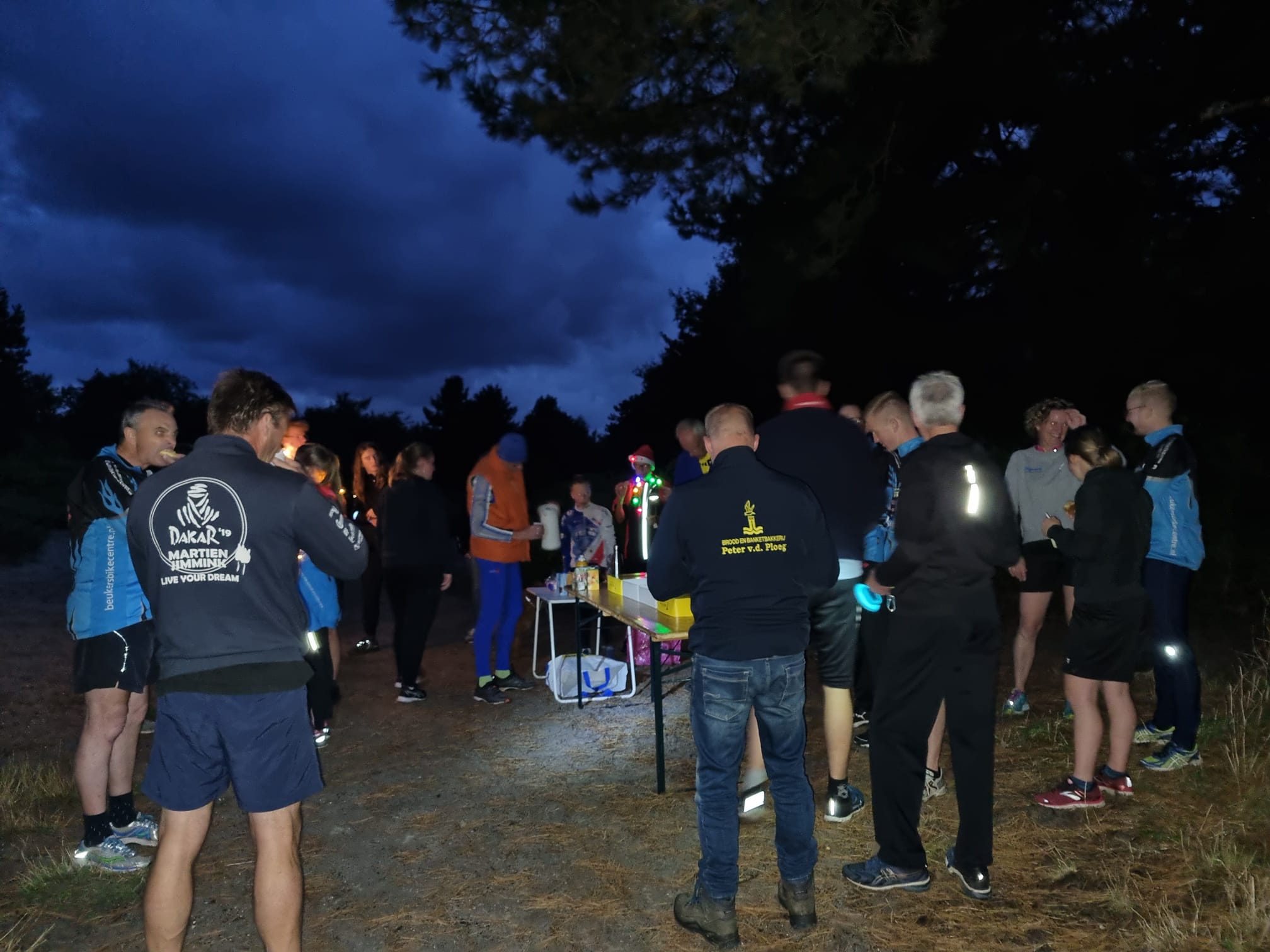 De tafels werden uit de auto gehaald, de meegebrachte lichtjes gingen aan en onze bakker ‘Peter van de Ploeg’ bracht overheerlijke gebak en koek. Ook was er koffie, thee en sapjes. Onder een mooie wolkenhemel met donkere wolken aan de ene kant en heldere lucht aan de andere kant, stonden we gezellig na te kletsen over het seizoen. Het was heel sfeervol!