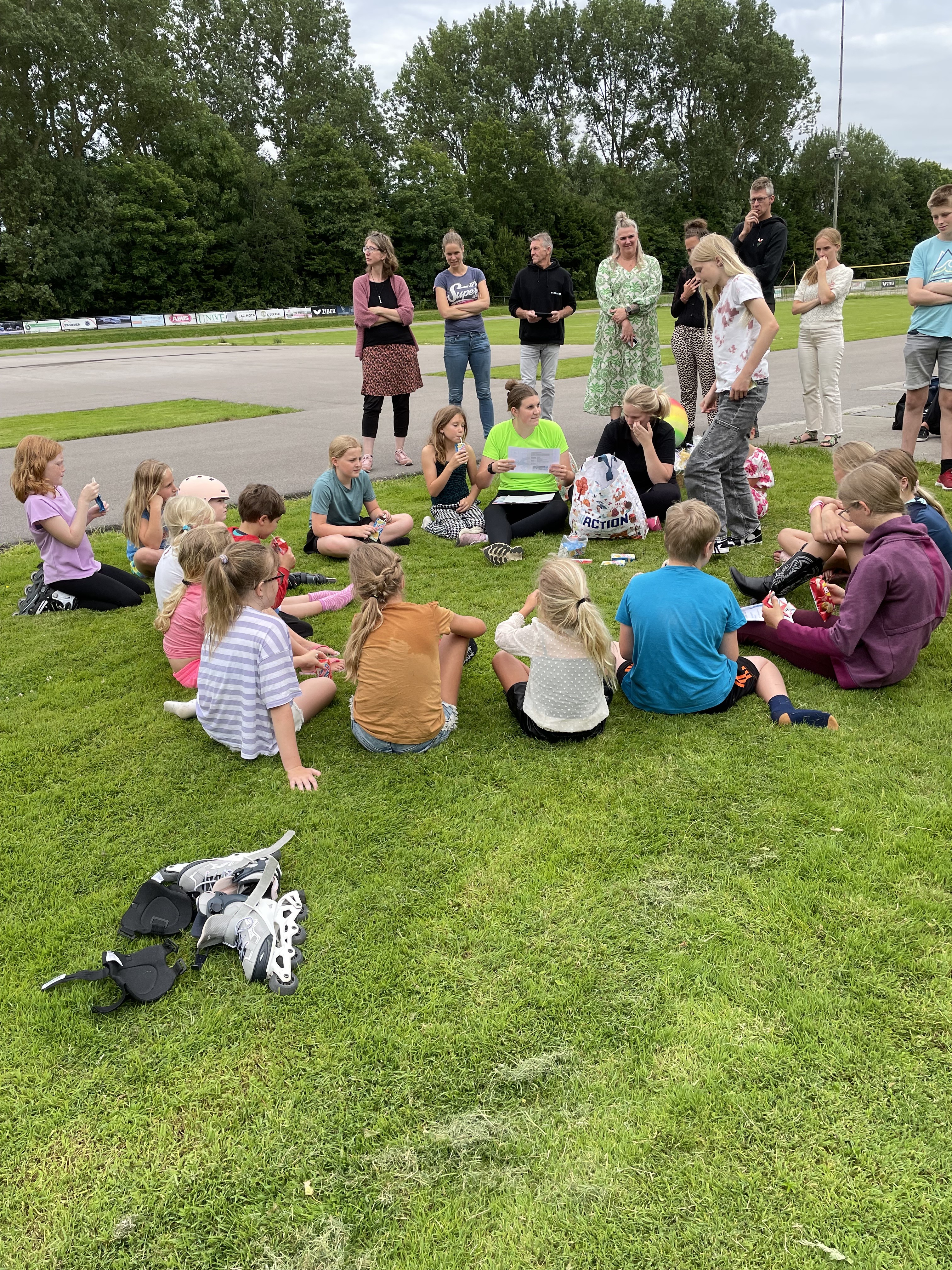 Na afloop gingen alle kinderen in de kring op het gras zitten, want de diploma’s werden uitgereikt en er was even tijd voor een traktatie.
